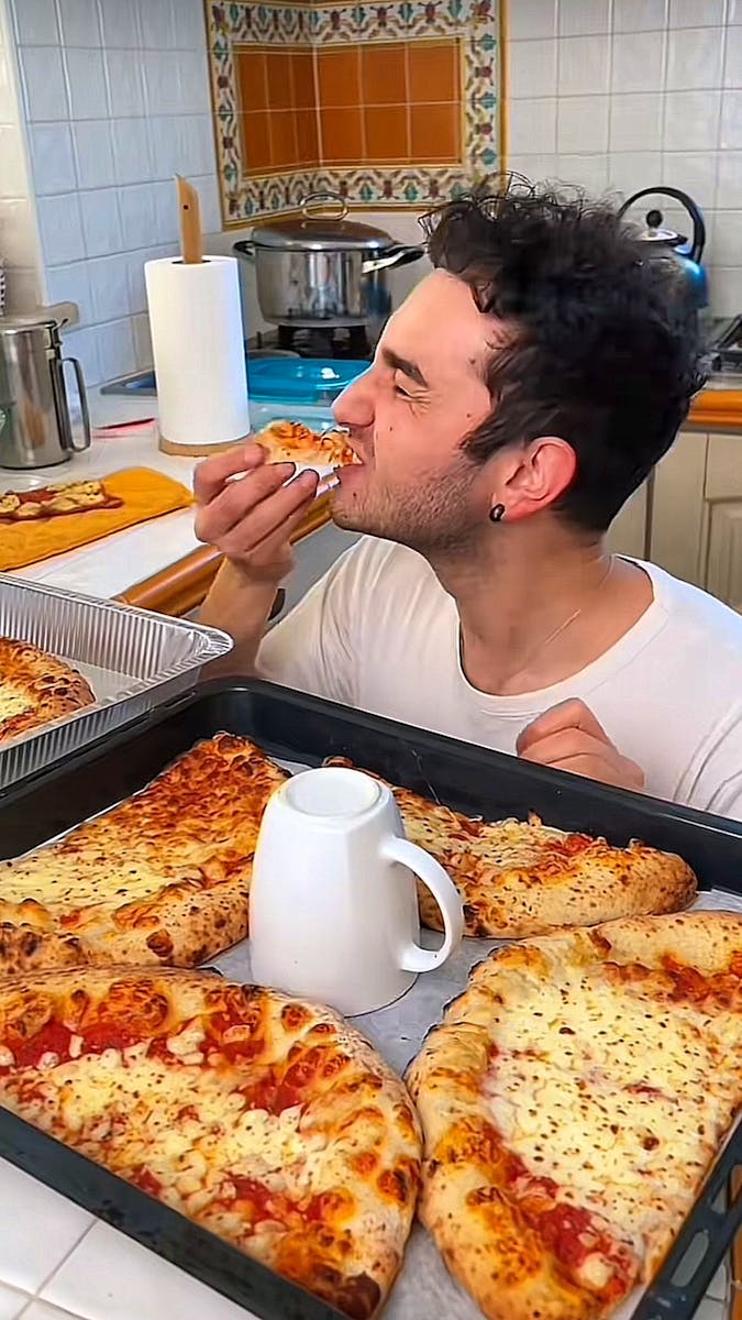 Placez la tasse à l’envers dans l’espace vide situé entre les deux pizzas coupées. Posez ensuite le plat, le moule ou l’assiette qui contient la troisième pizza sur la tasse et glissez l’ensemble dans le four.